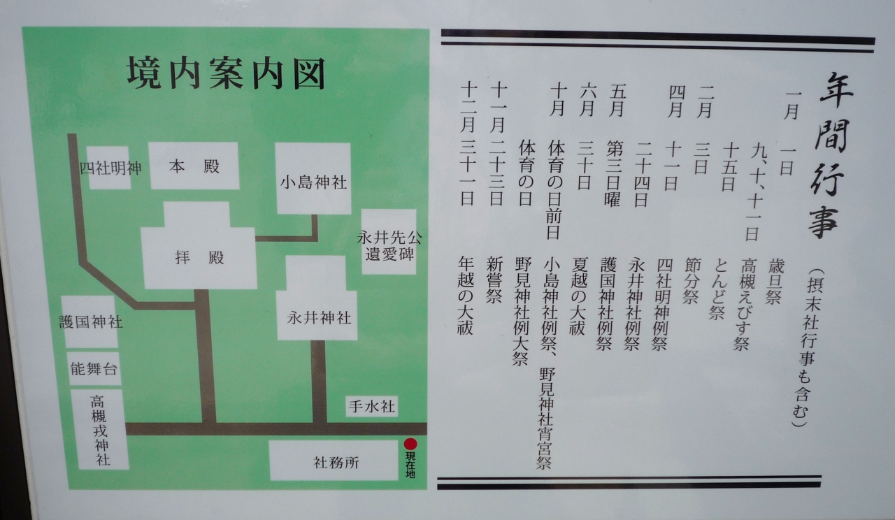 境内には大きなイチョウと、真っ赤に色づく紅葉がありそうです。