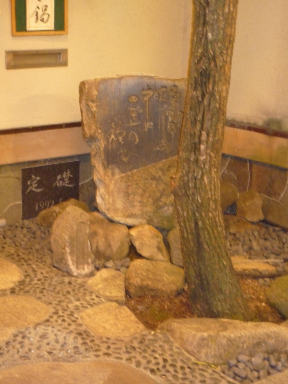 きつねうどんで有名な道頓堀今井の店の前に、ちょこと石碑があります。