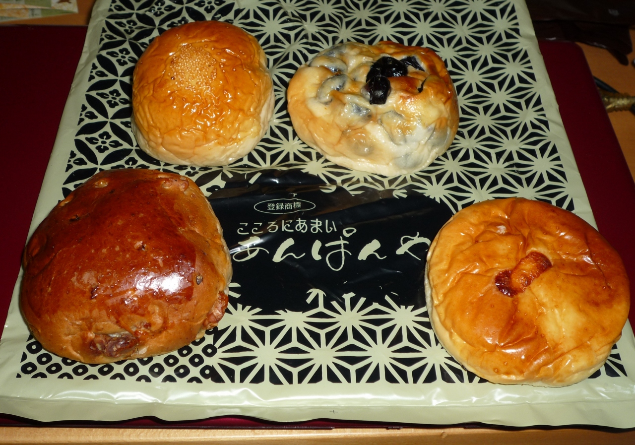 今回は粒あんぱん、黒豆ぱん、クリームチーズぱん、くるみぱんを買いました。