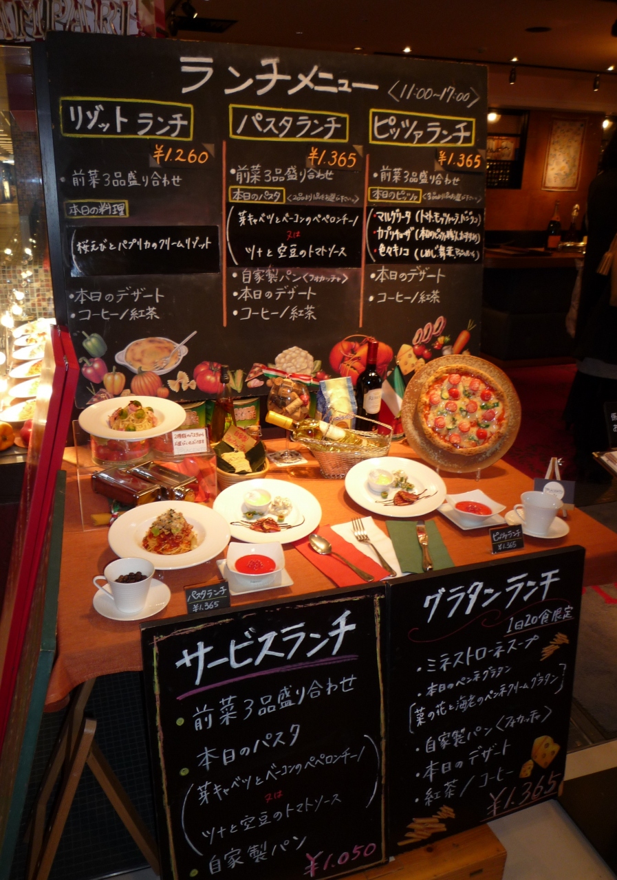 (前菜・3種類のピザから1つ・デザート・コーヒー)1,365円にしました。