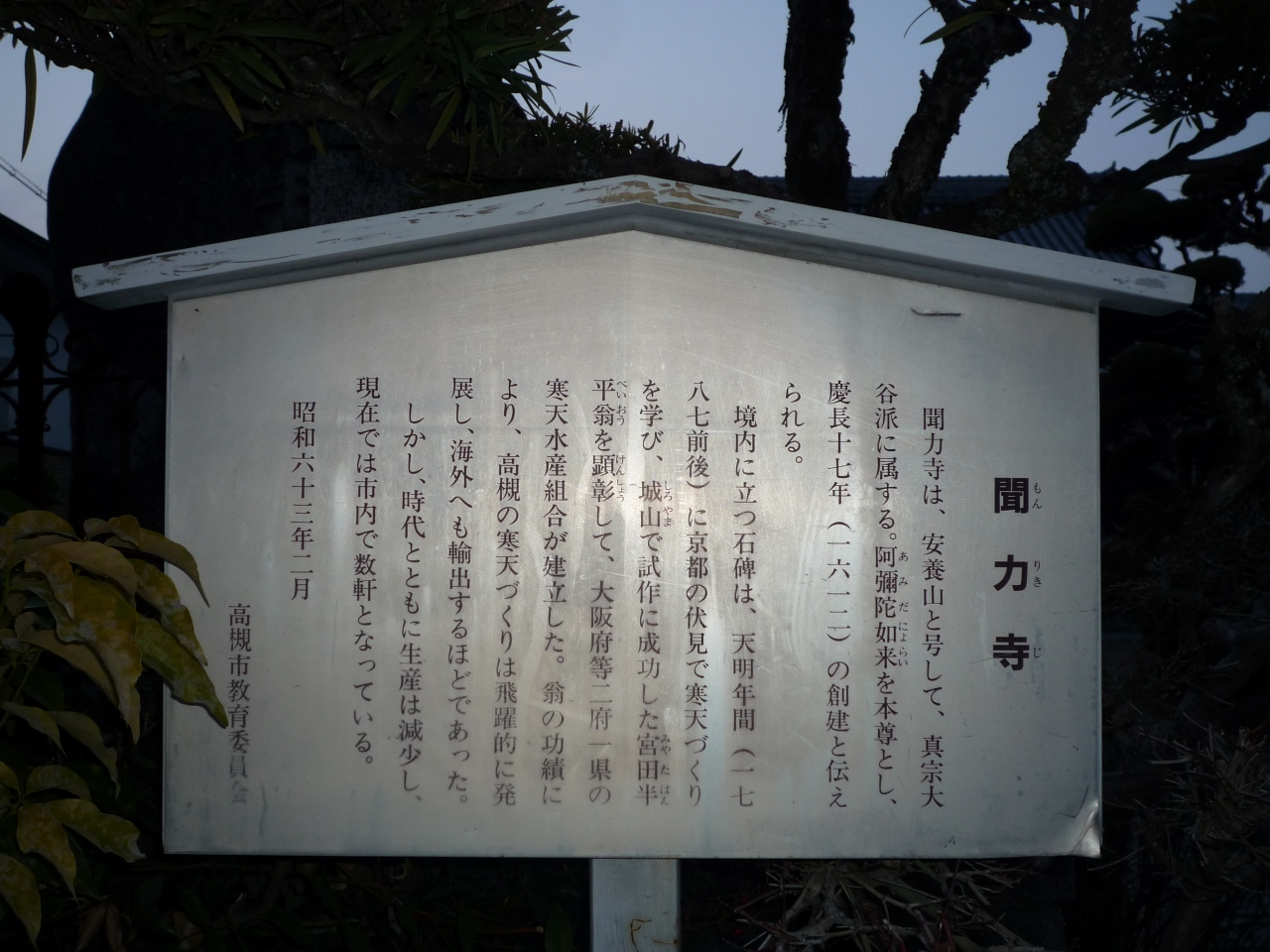 聞力寺よりもっと山奥の城山の渓谷で寒天の試作に成功したと言われています。