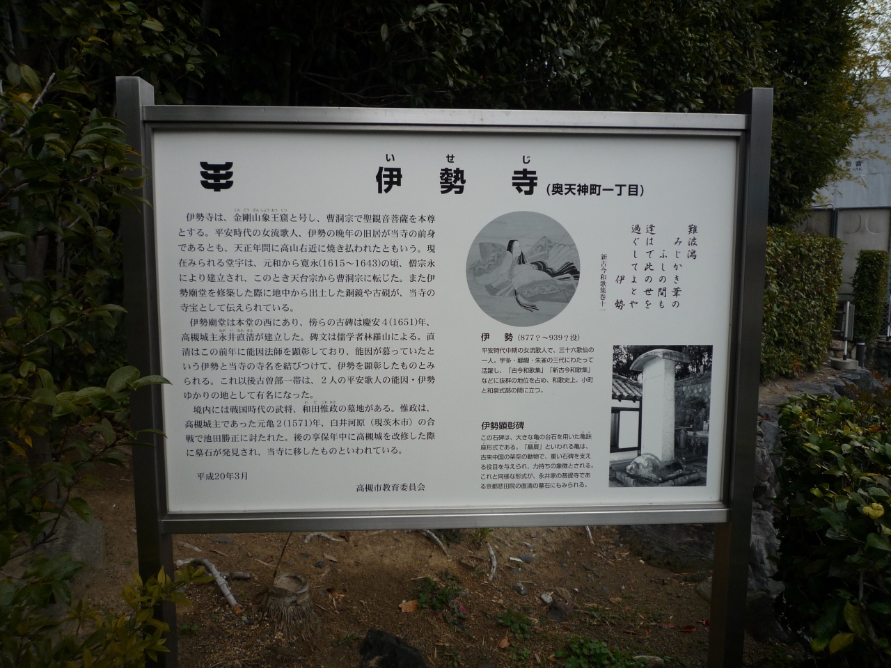 小倉百人一首にも載っている平安時代の歌人、伊勢が晩年を過ごした旧居