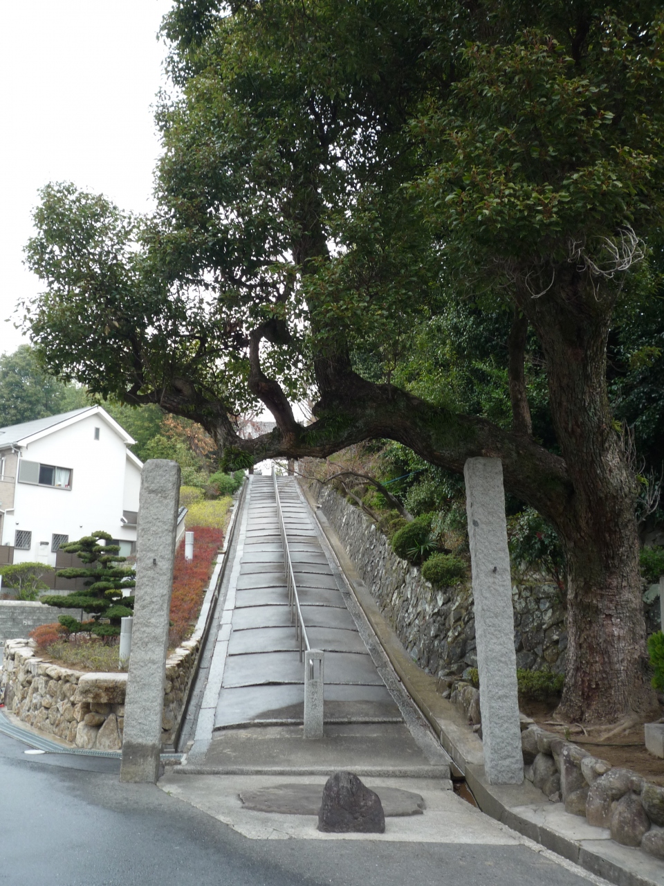浦堂というバス停で降りて住宅街の急な坂を登るとあります。