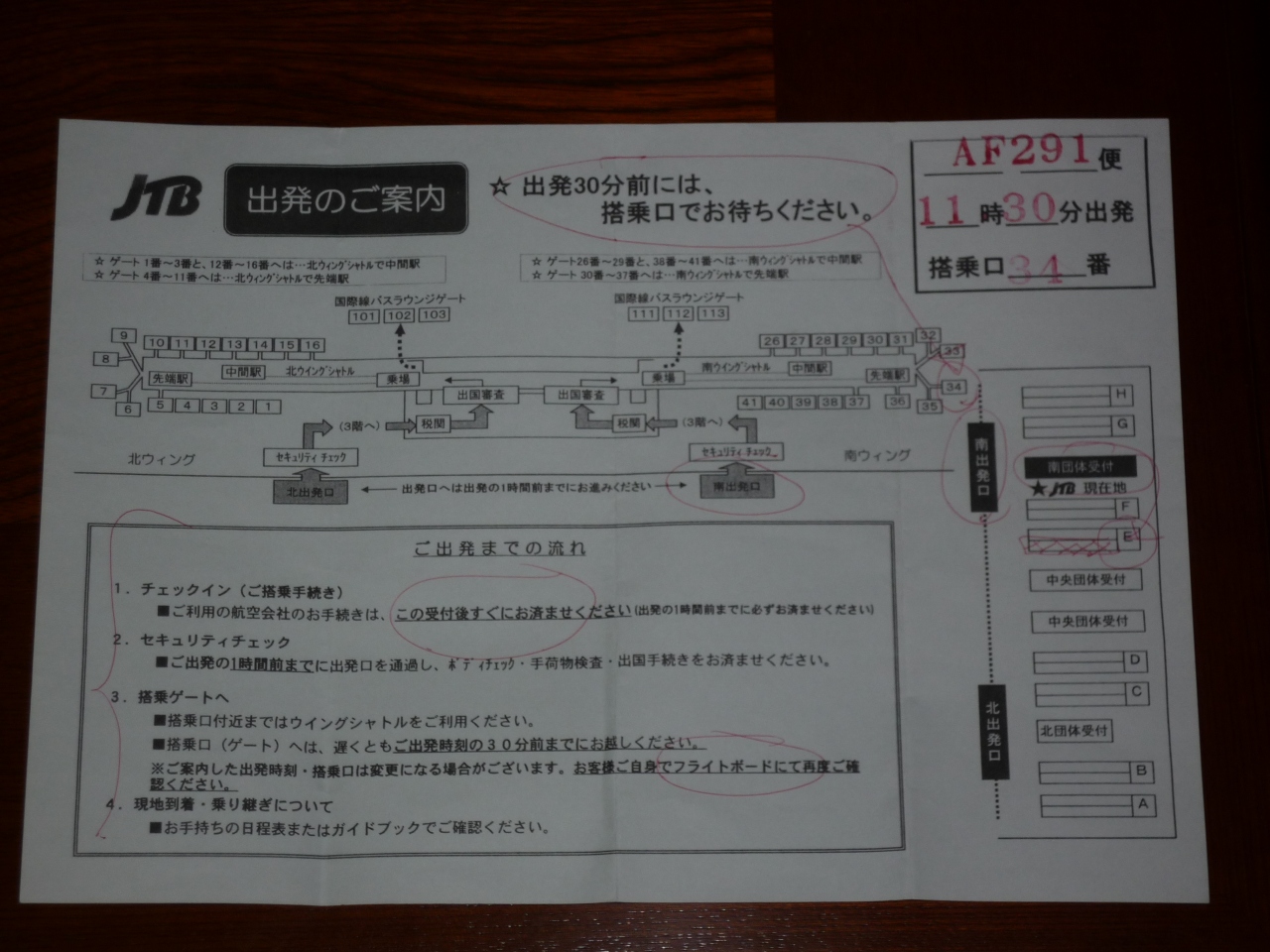 エールフランスのパリ→大阪関西空港あターミナル2Fから出発します。
