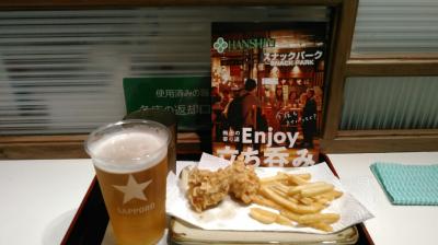 - 今回はスナパ呑みセットでビールと、とり天とポテト