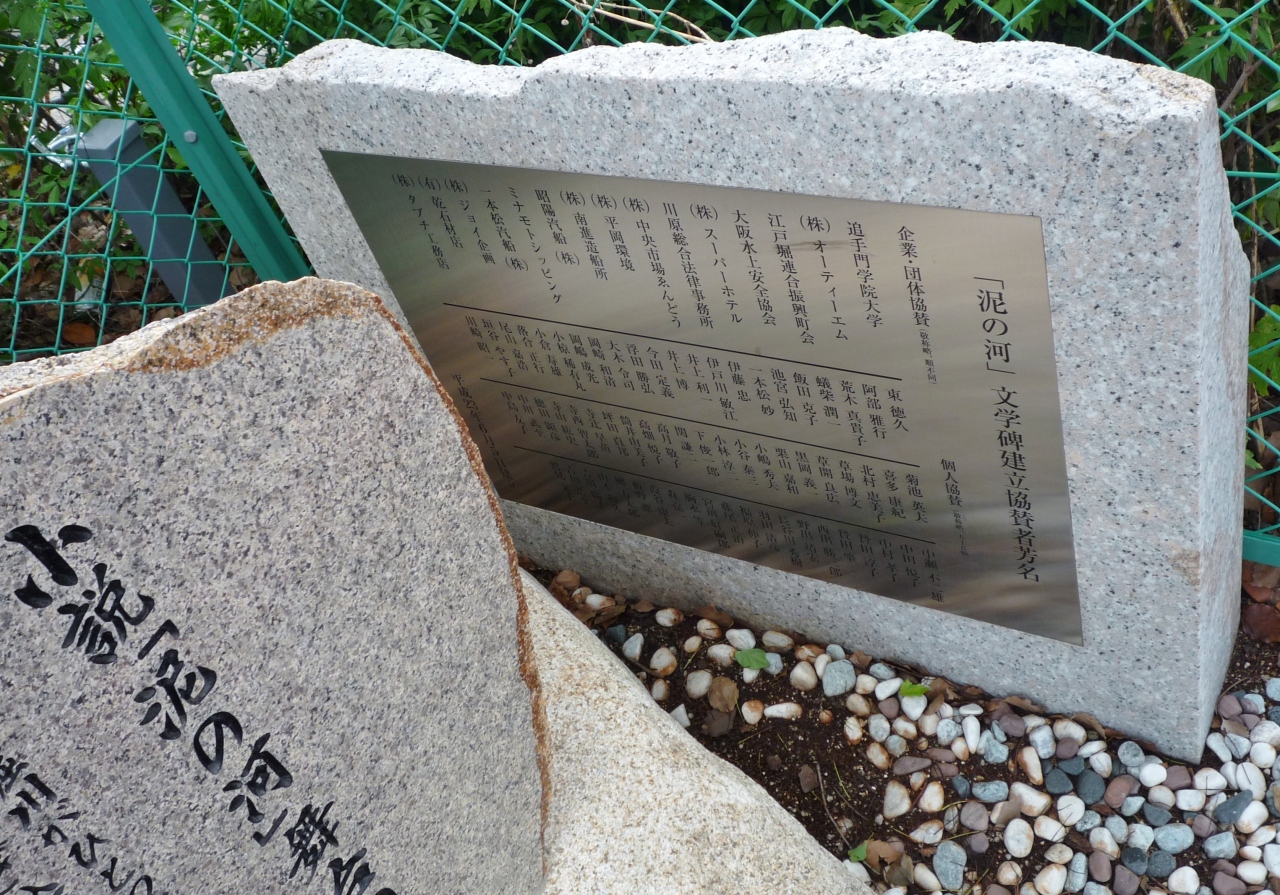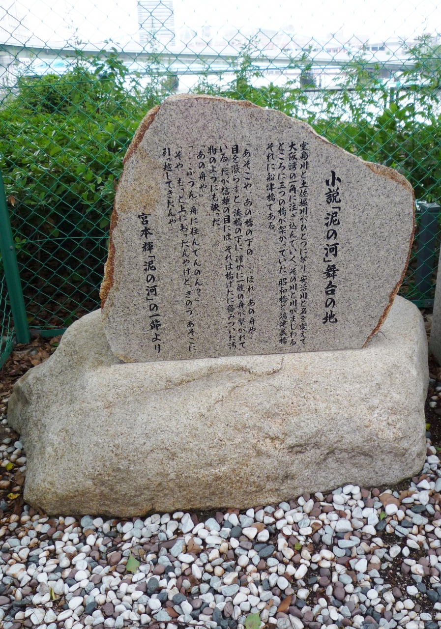湊橋の南側のたもとに、「泥の河」文学碑があります。