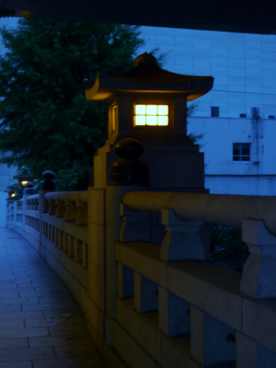 午前中に歩いた綺麗なオフィス街の中之島一帯も、雨に沈んでいるのに驚き。