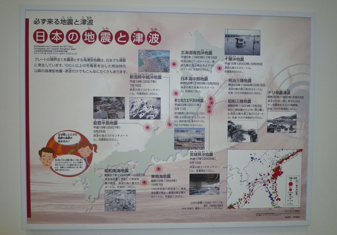 他にも4メートルまでの津波の高さを知れる壁や、地震や津波に関する資料など