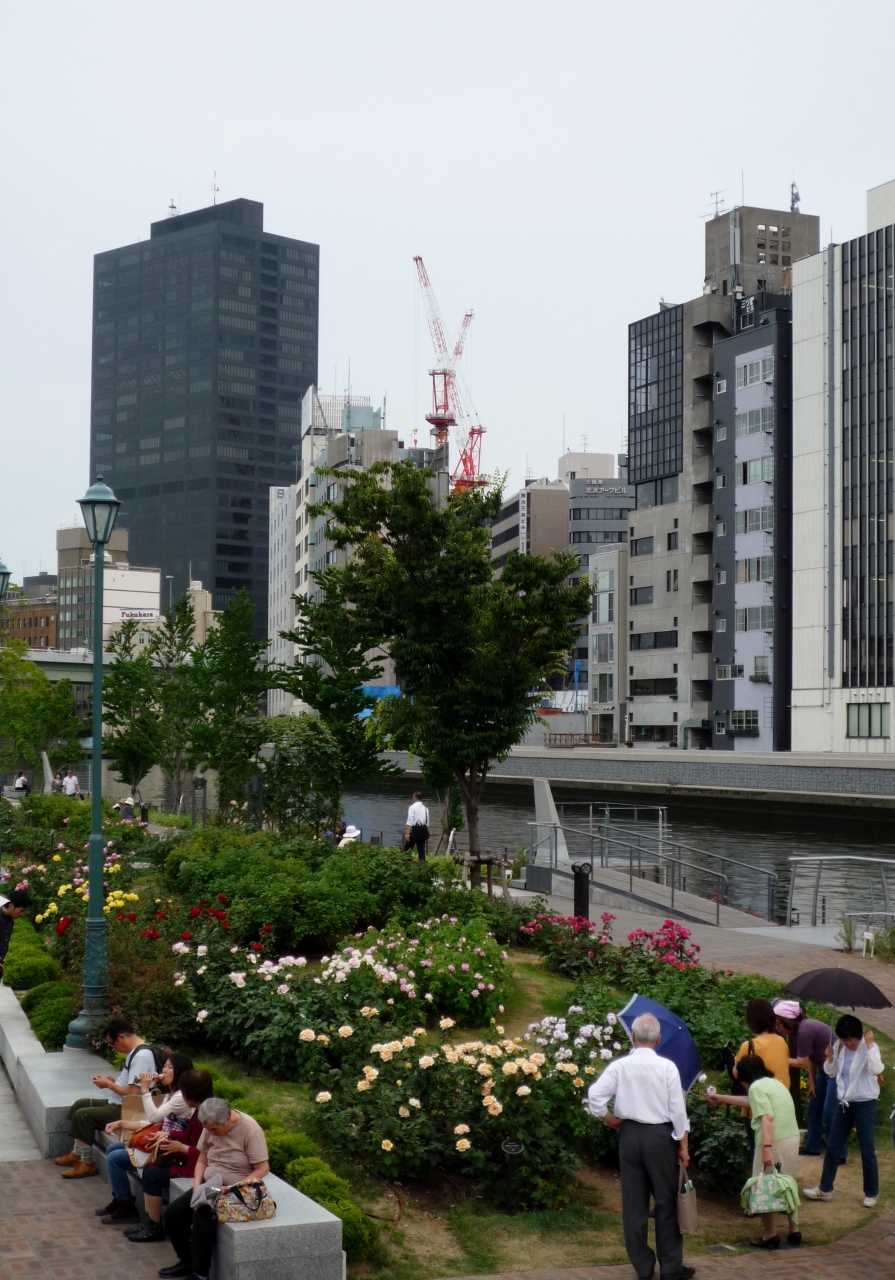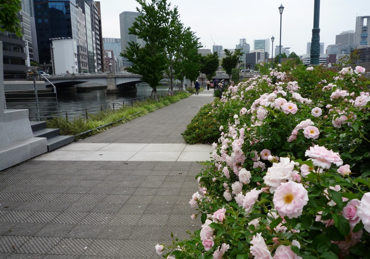 堂島川沿いのバラの小路から中之島公園までバラが咲き乱れます。