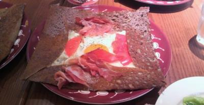 ガレットは半熟玉子と生ハムがたっぷりのっていて、