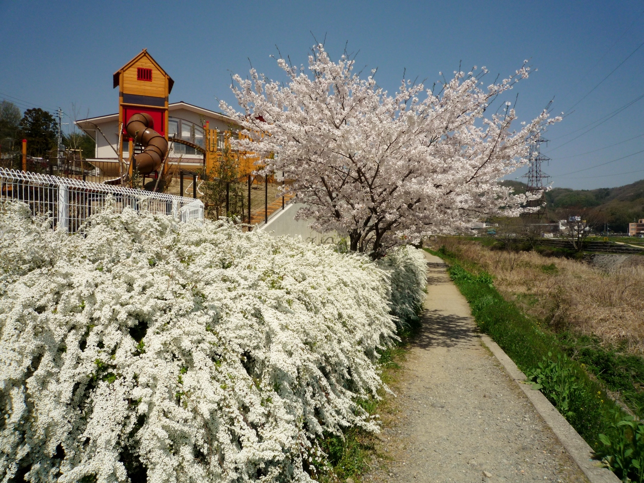 春は桜や雪柳、レンギョウが美しく、カモやサギが川の上を飛んでいます。