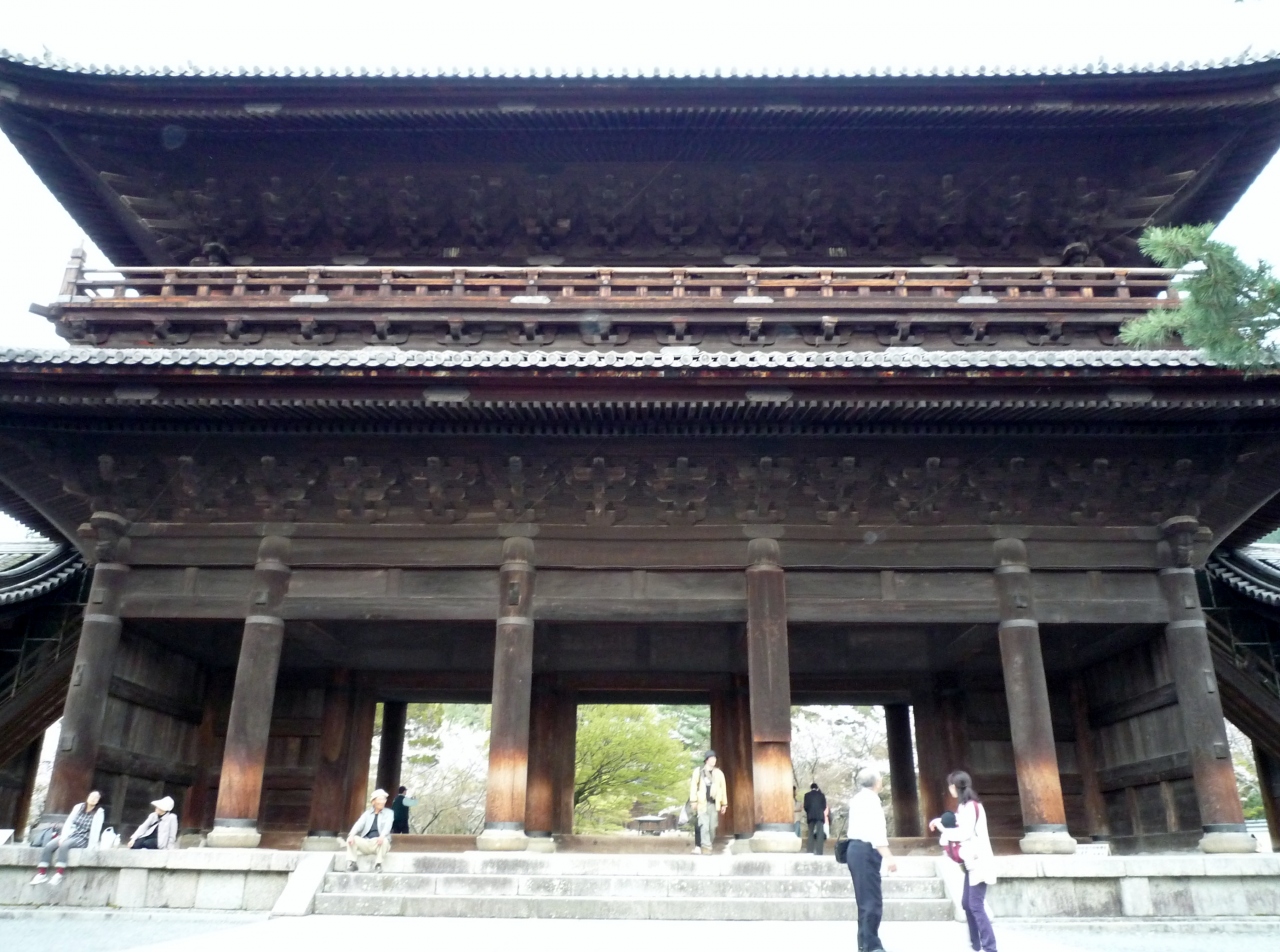 門と人間を撮ろうと思ったら、被写体になる人は石段の上に、