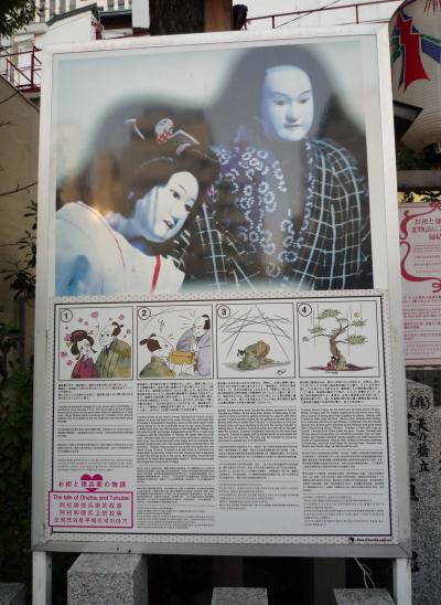 外国人の観光客も多いようで、曽根崎心中のあらすじの英語の表記もありました。