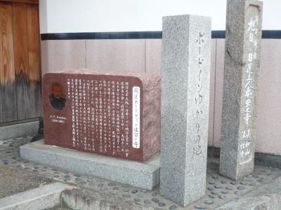山門に回ると「ボードインゆかりの地」の石碑があります。