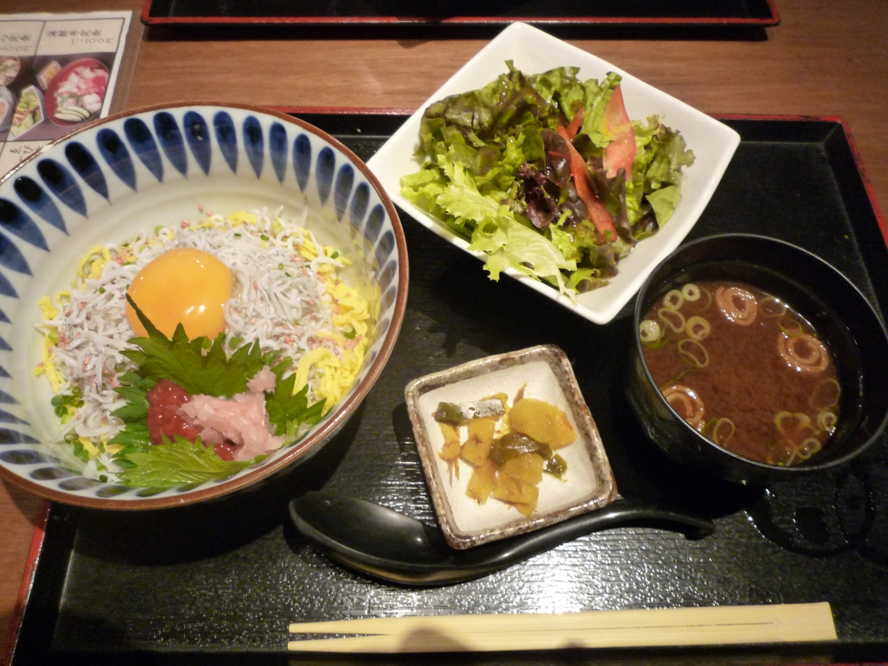 私は生ビール390円(税別)としらす丼定食980円(税込)、