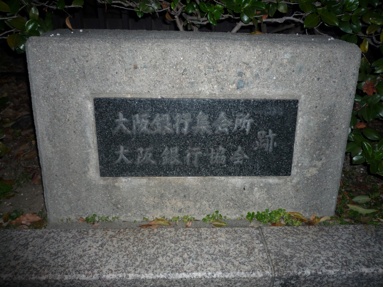 「大阪銀行集会所跡」「大阪銀行協会跡」と刻まれた石碑があります。