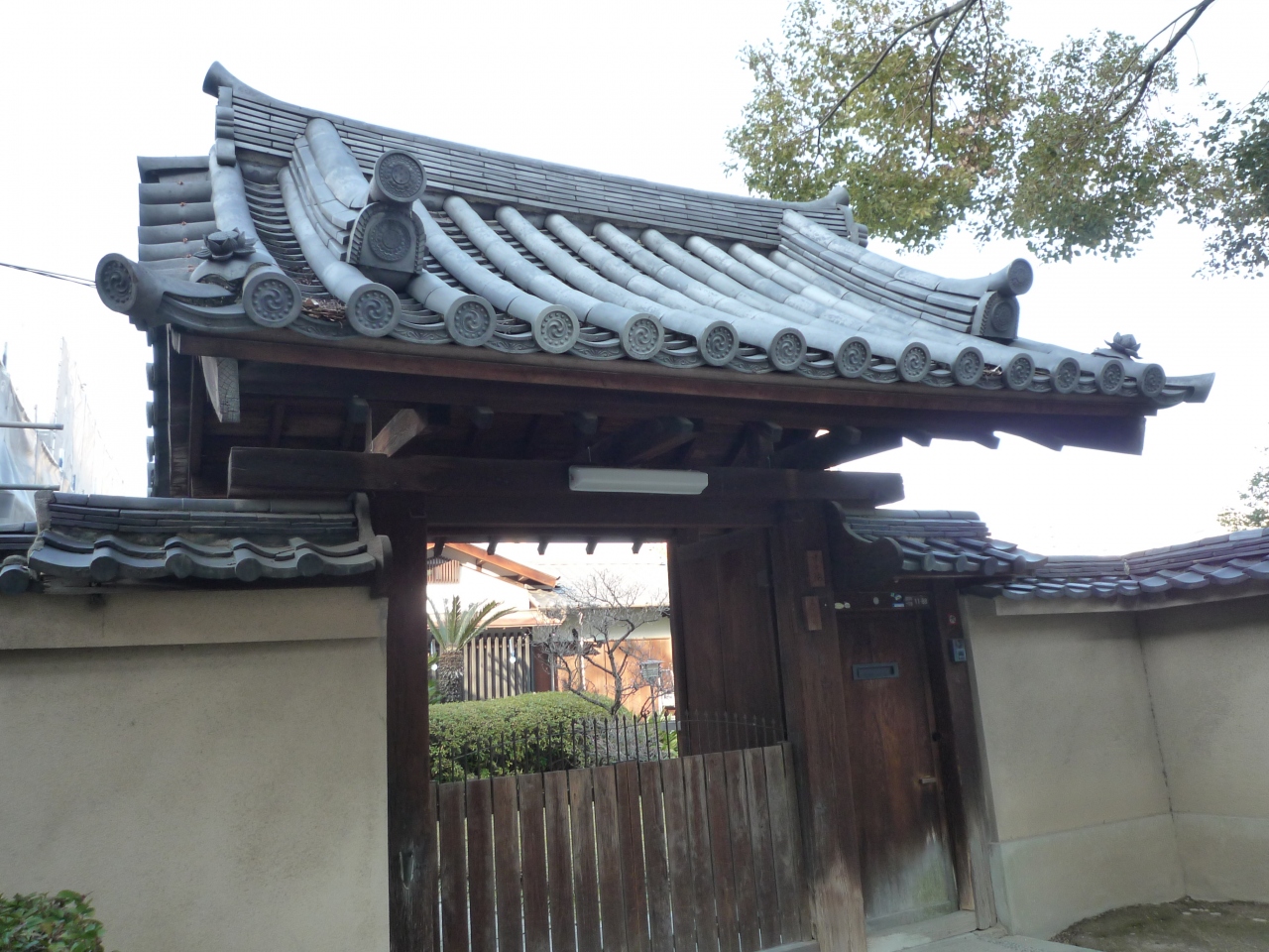 他の朱色の門と違って、瓦と木製の門でした。