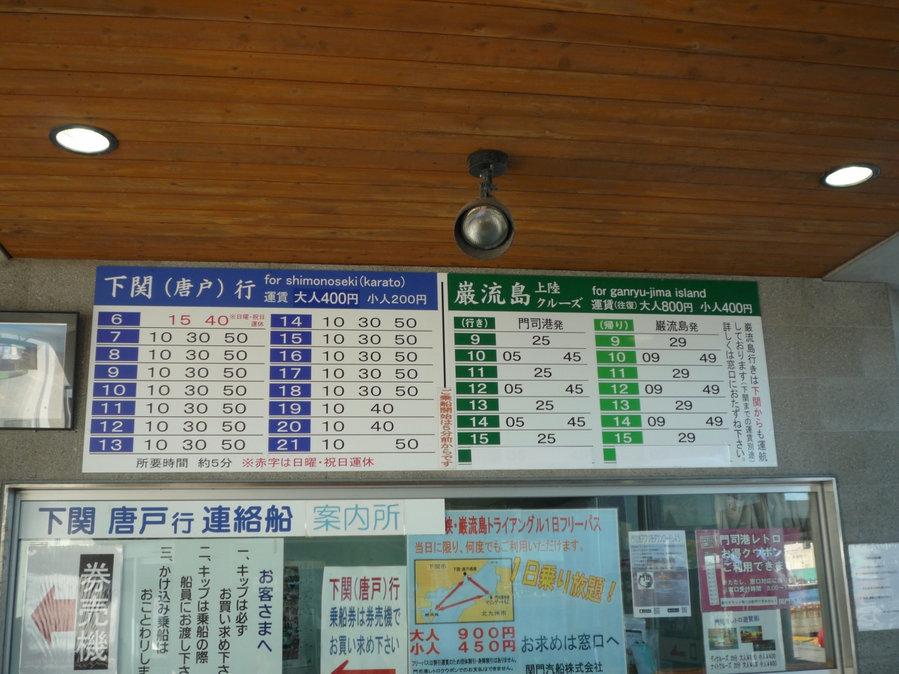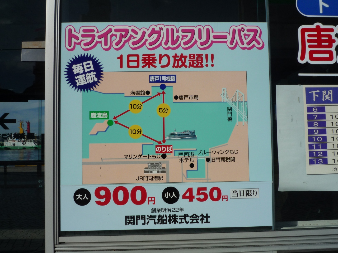 - 門司港⇔唐戸港は1回400円・1日乗車券900円
