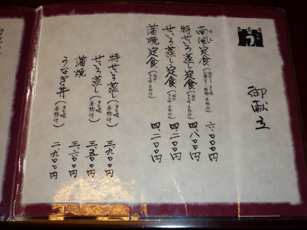 私たちは消費税込みで3500円(うなぎせいろ蒸し、肝吸い、香の物)を注文しました。
