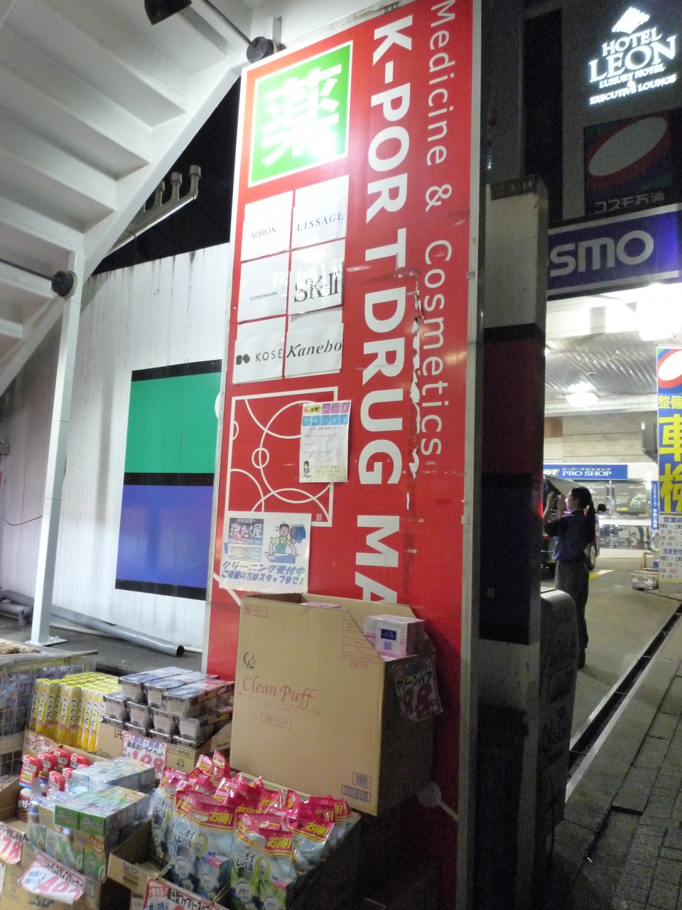 1階はドラッグストアで、正面にある2階への黄緑色の階段が目印です。