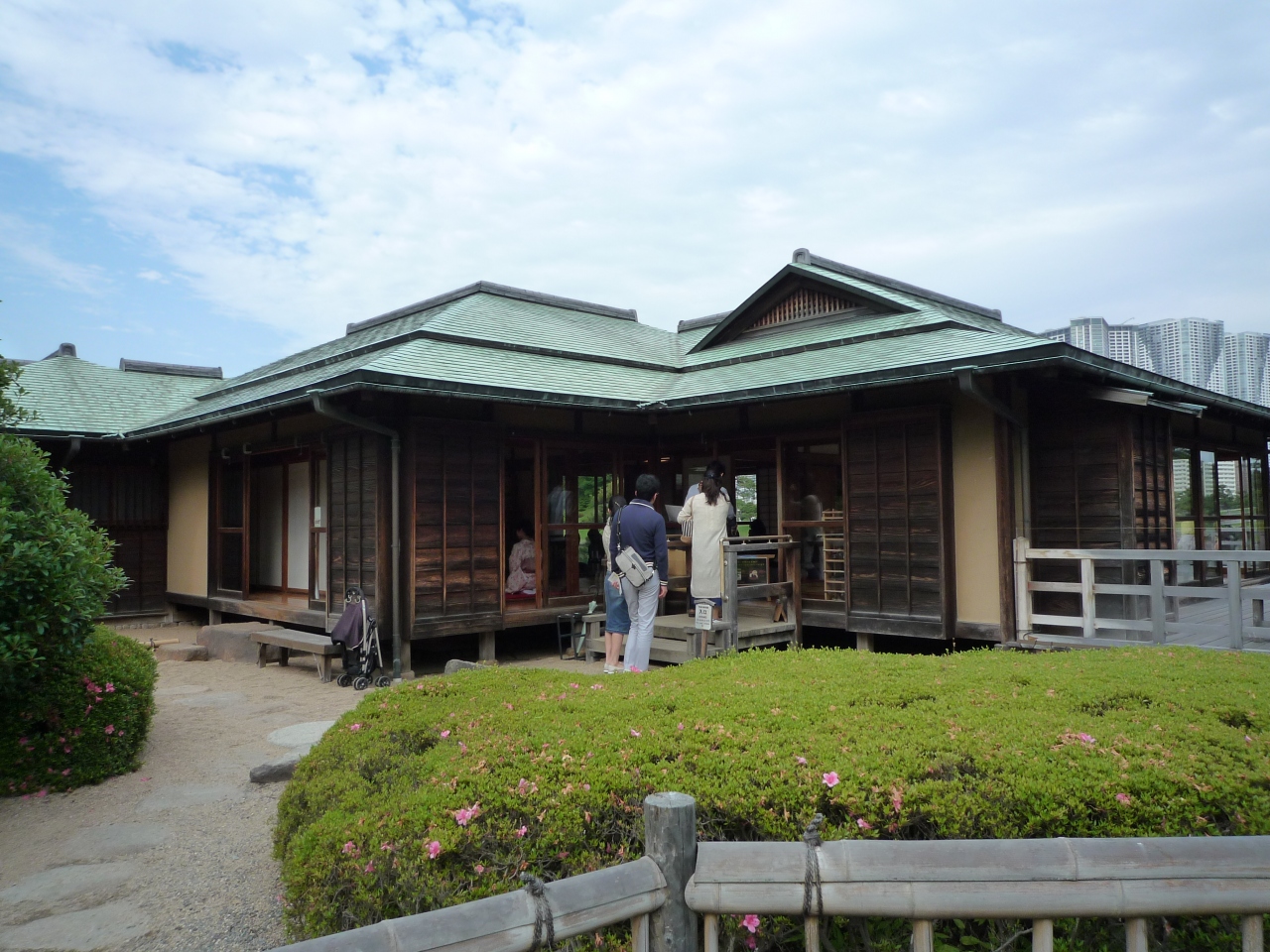 浜離宮恩賜庭園内の潮入の池にあるお茶屋です。