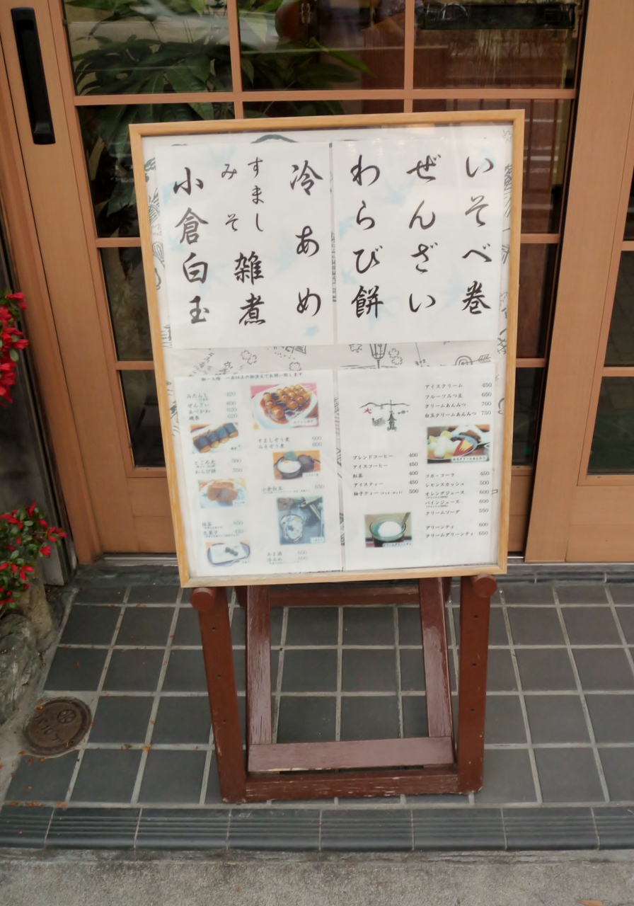 みたらし団子の発祥のお店ですが、わらび餅やぜんざい、磯辺焼きなどもあります。
