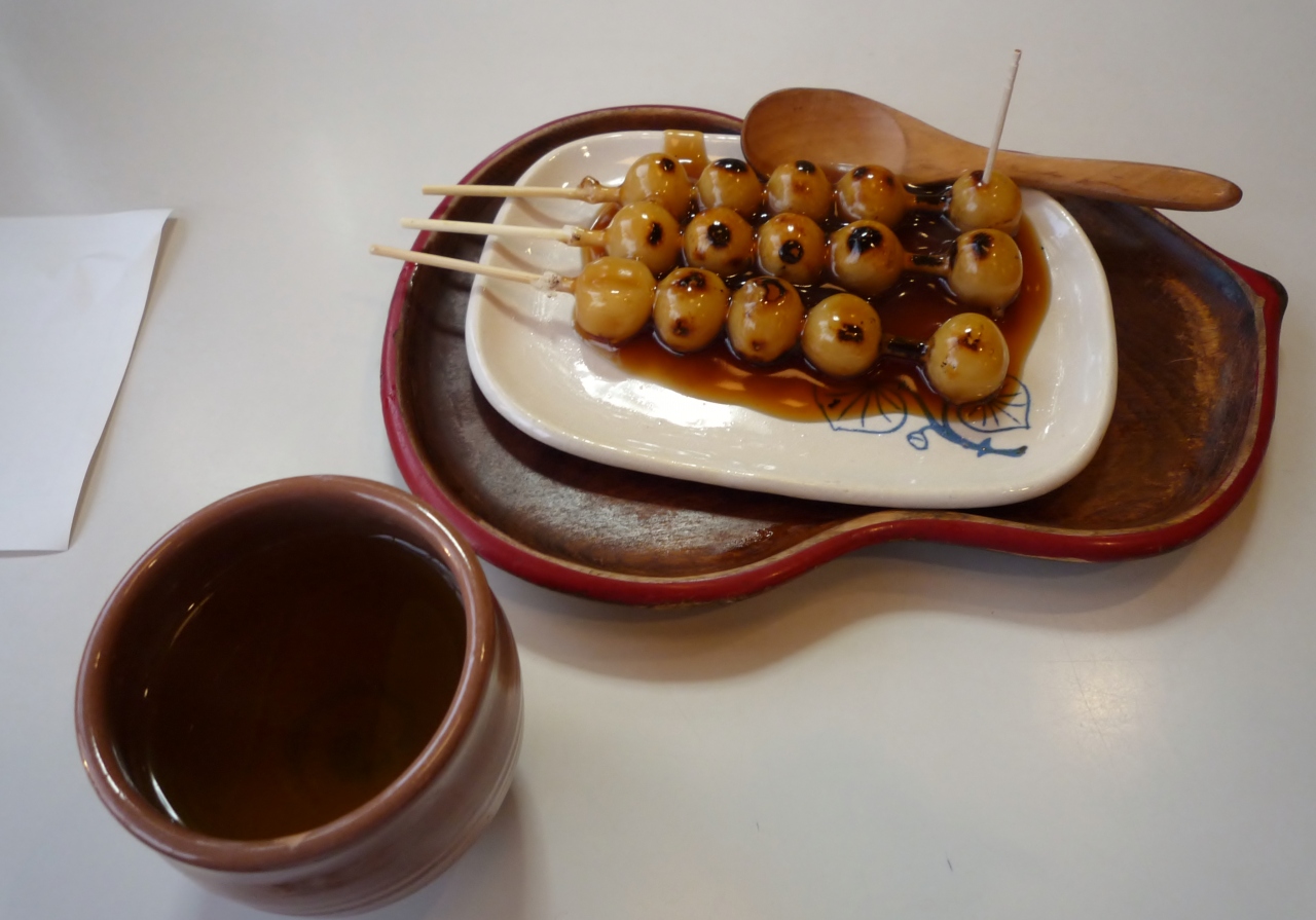 - 香ばしく焼いた歯ごたえのある団子とみつが美味しい