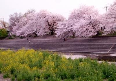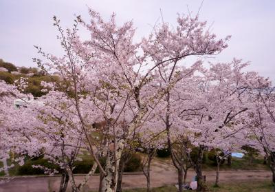 - 山の斜面を利用した公園なので、桜を見下ろせる