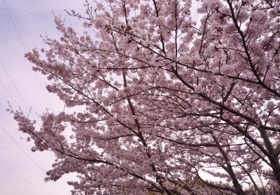 川の方に向かって枝が伸びているので、ちょうど顔の辺りまで桜が届いています。