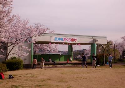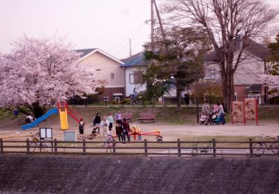 ちょうど桜のシーズンで買った和菓子を芥川桜堤公園で食べました。