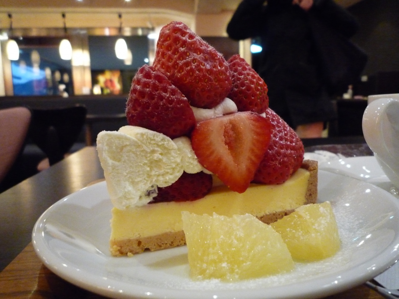 数あるあまおうのケーキから、あまおうタルト(チーズケーキ)とコーヒーにしました。