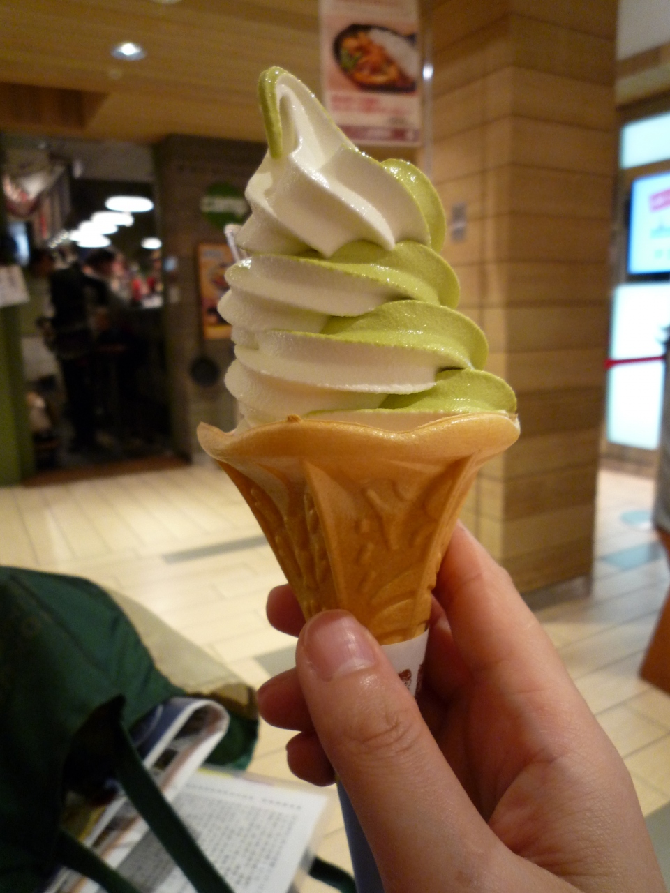 季節のソフトクリームは抹茶だったので、ミックスにしました。