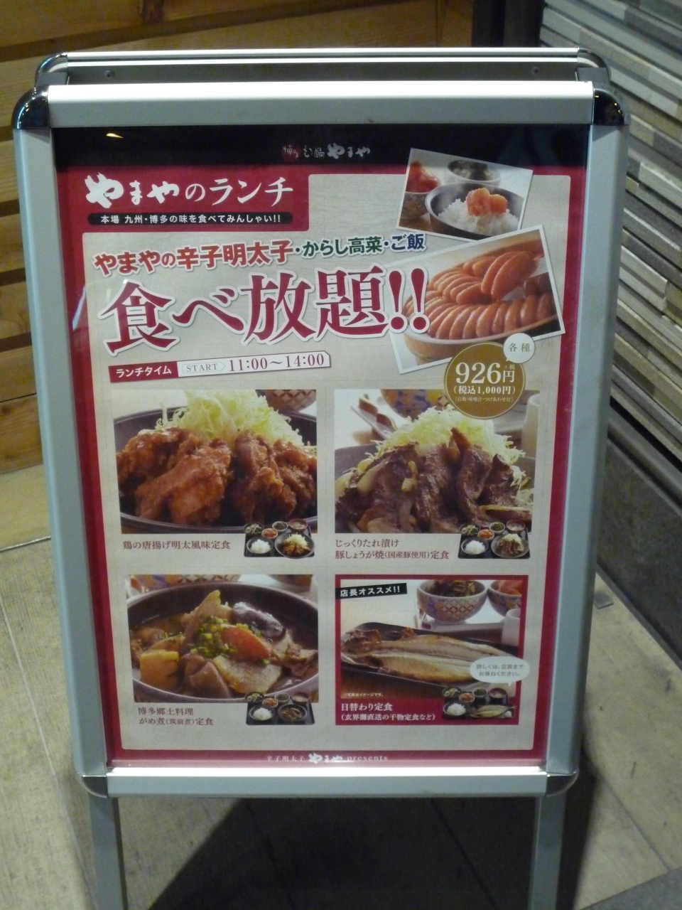 税込1000円のランチセットで、辛子明太子、高菜・ごはんがお代り自由です。