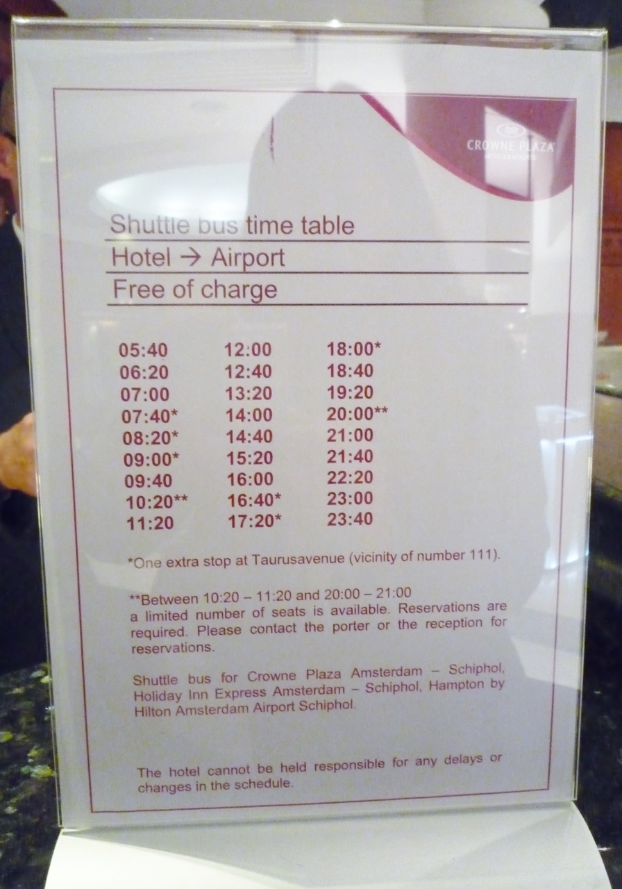 スキポール空港へは40分毎に無料のシャトルバスが出ています。