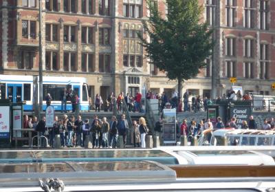 トラムや運河巡りのクルーズもアムステルダム中央駅の前から出る便も多いです。