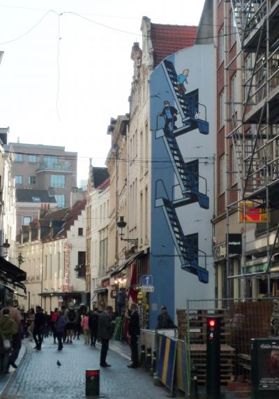 タンタンの壁画を見ましたが、狭い道幅に車も通るので注意が必要です。