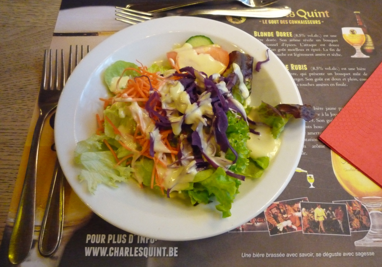 サラダ・ローストポーク・リエージュワッフルのコースでした。