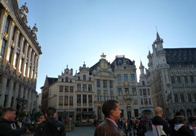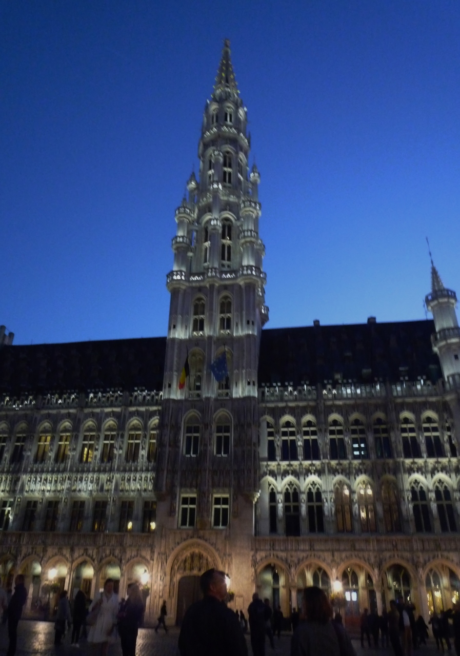 ツアーの夕食がグランプラスのお店だったので夕方の景色も見れました。