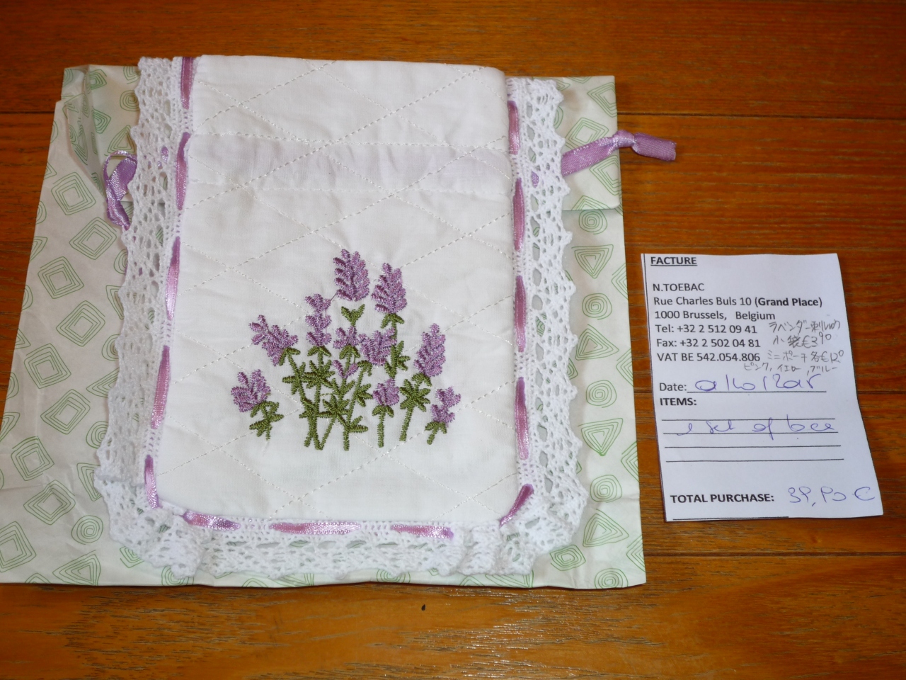 ラベンダーの刺繍の付いた巾着3.9ユーロを買いました。
