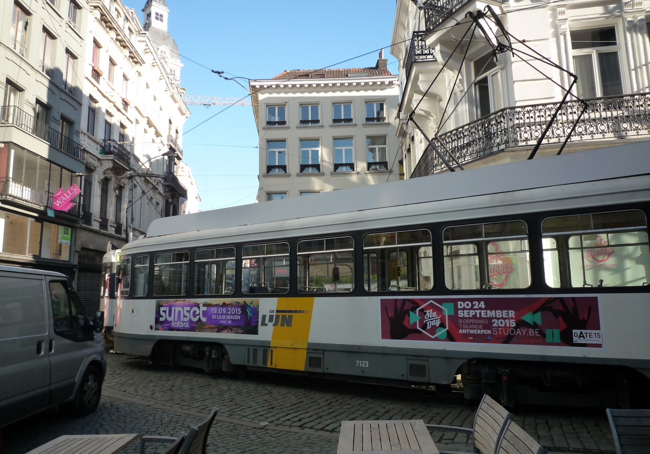 アントワープは目抜き通り以外は狭くて曲がった道が多いです。