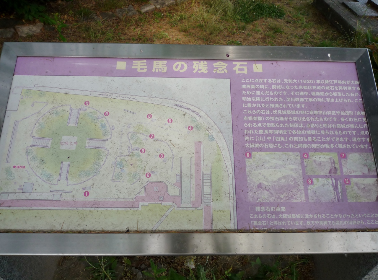 この辺りにある残念石はもともと伏見城で使われていた石を、