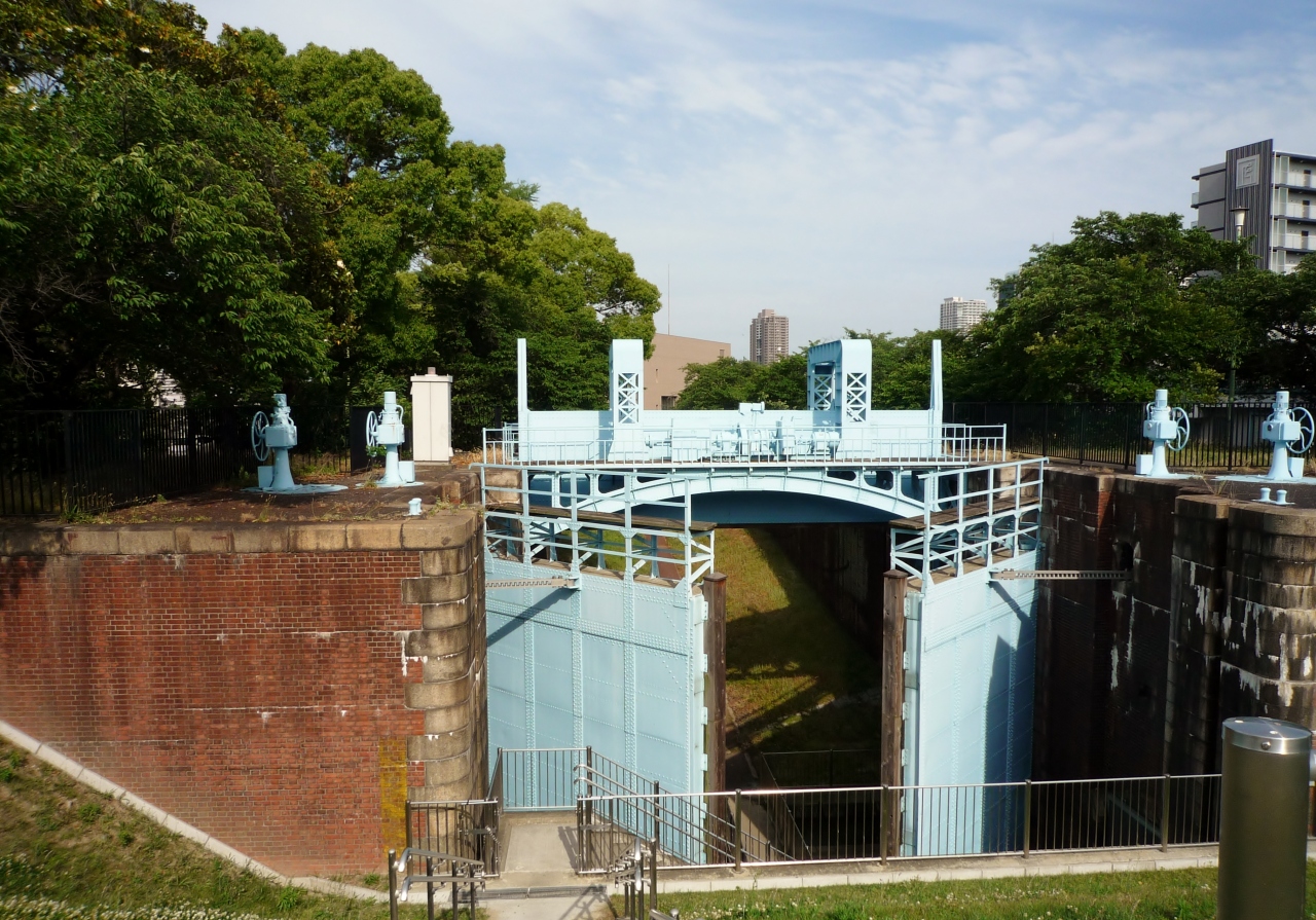 。当時の洗堰と閘門は、現在の施設ができたあとも一部が保存されており、
