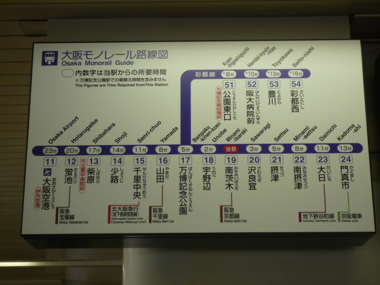 本線(大阪空港~門真)と、彩都線(彩都西~万博記念公園)があります。