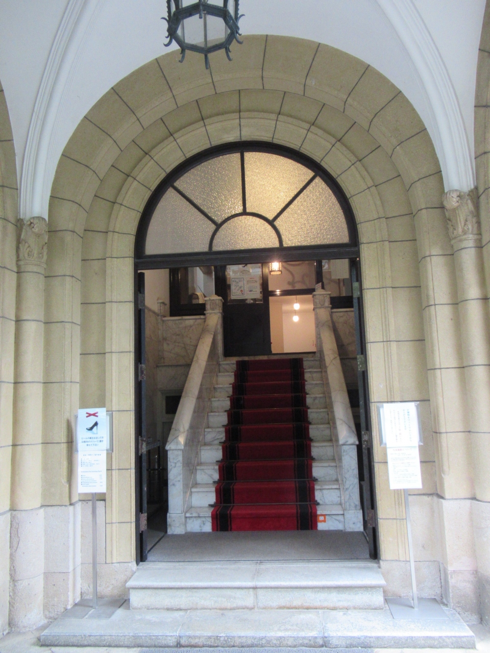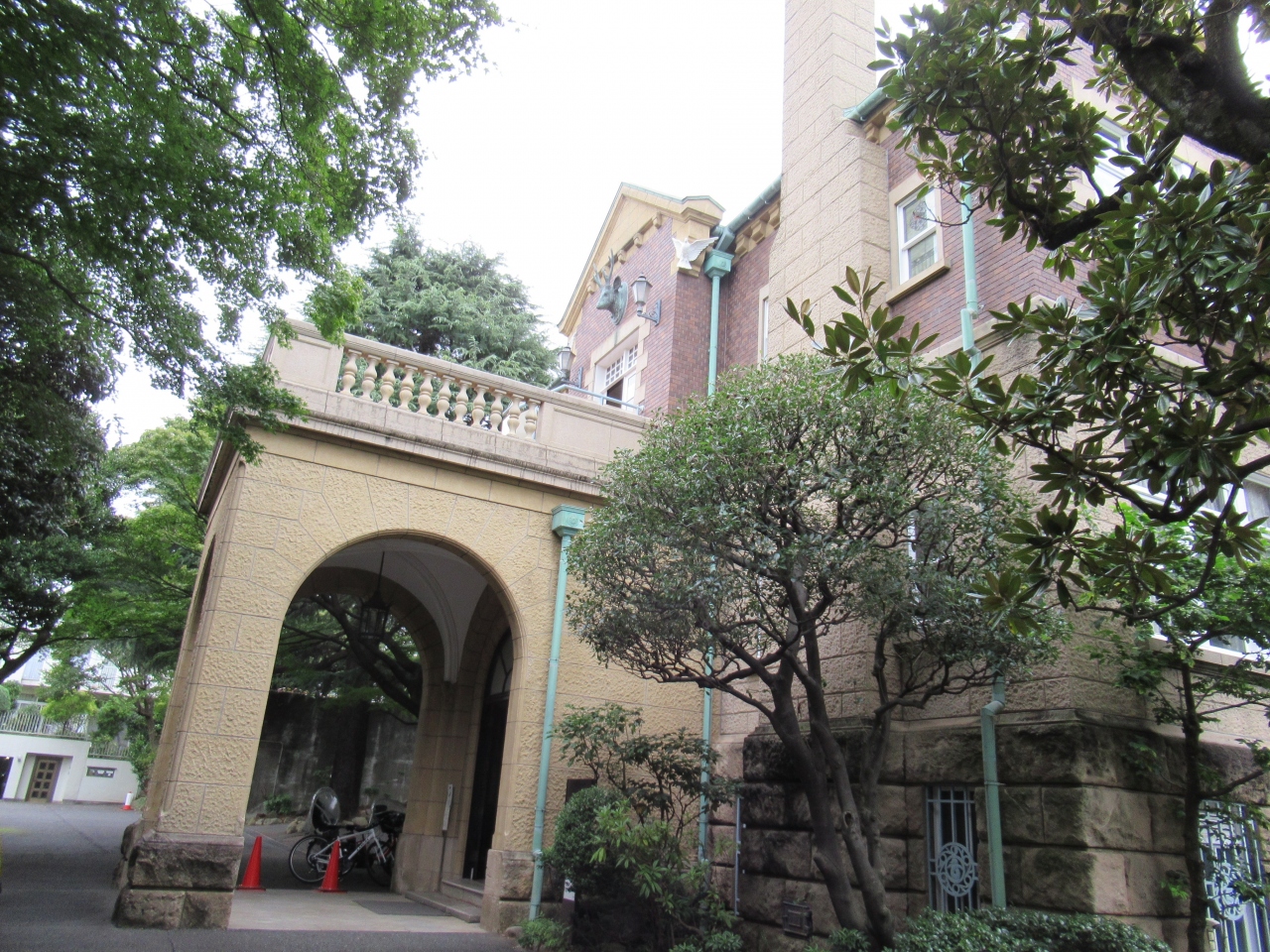 東京大学発祥の地の石碑は、東京の学士会館旧館の正面玄関脇に建っています。