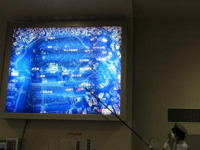 説明員の誘導のもとに富士見櫓下、宮内庁庁舎前、塔の坂、宮殿東庭、宮殿中門、正門鉄橋(渡ってから折り返し)、宮殿東庭、宮殿北車寄前、山下通り、宮内庁庁舎前、窓明館でおわりとなり、桔梗門(出門)から退出します。