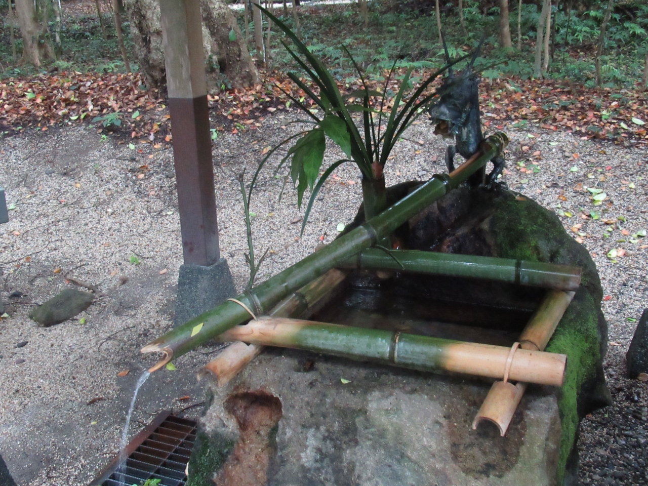 石段を上った先にある鳥居をくぐった境内に手水鉢があります。