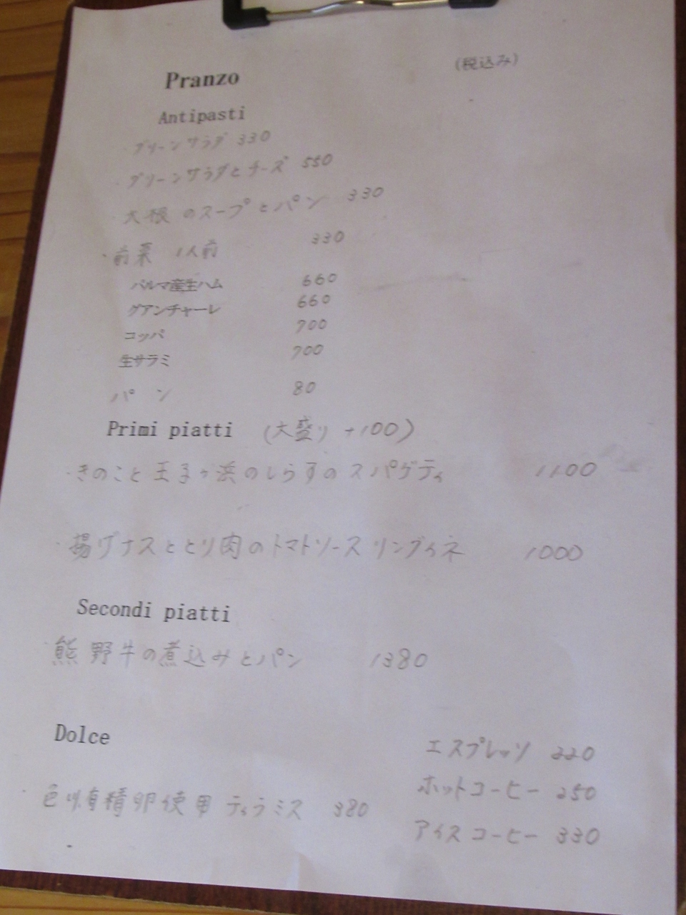 欧食堂ですが、イタリアンで、店内にはイタリアの冊子が置いてあって、料理が来るまで眺めてました。