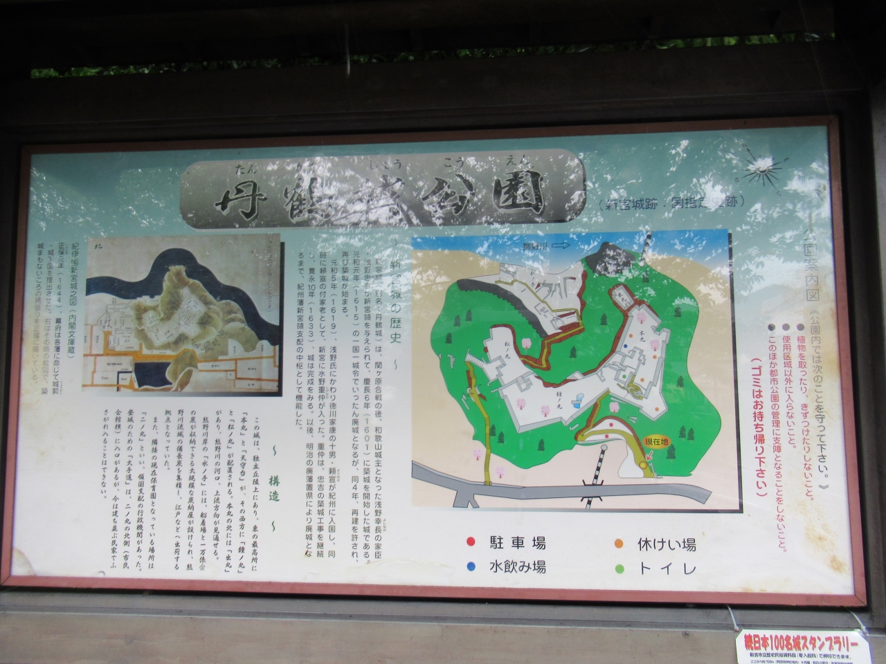 現在は、熊野川河口の南岸の小高い丹鶴山に築かれた眺望の良い城跡公園となっていて、建物は残っていません。