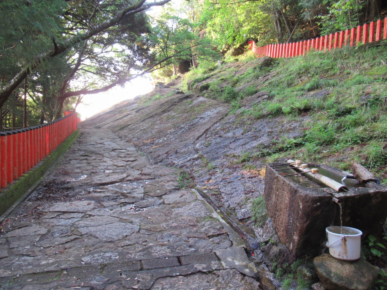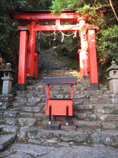 神倉山に鎮座し、境内外縁は直ちに断崖絶壁になっていて、源頼朝が寄進したと伝えられる物凄い急勾配の鎌倉積み石段538段を登らなければなりません。