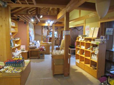 コの字型の建物に、お土産・物品販売、食堂、展示コーナーがあります。
